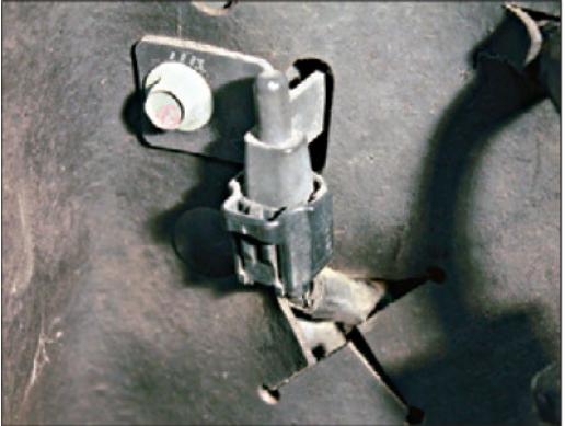The ambient temperature sensor is typically located at the front side of the vehicle either to the left or right side of the radiator and condenser. It must be a reasonable distance away from heat sources so it can accurately measure the outside temperature, which is used for the fuel injection system as well as for the HVAC