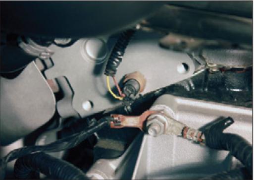 The engine coolant temperature sensor is located at some point on the engine that is exposed to engine coolant. This sensor is located at the rear of one of the cylinder