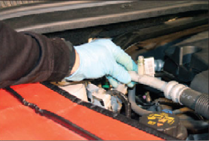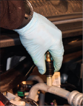 2. Connect the service end of the charge hose to the low side port of the AC system.