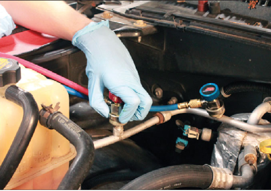 It is vital to use confident actions when connecting and disconnecting service hoses to the service ports on the AC system. The valve should also be in the released position when connecting and disconnecting it