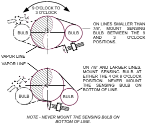 NOTE – CONFIRM PROPER THERMAL CONTACT BETWEEN VAPOR LINE AND CHECK EXPANSION BULB BEFORE INSUĀLATING THE SENSING BULB ONCE INSTALLED.