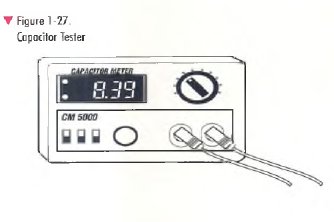 The capacitor tester (Figure 1-27) is used to test capacitors to determine their specific capacitance value and to find out if they are good, open, or shorted. For field service work,, most technicians usually test capacitors using the resistance (ohmmeter) function o f the VOM.